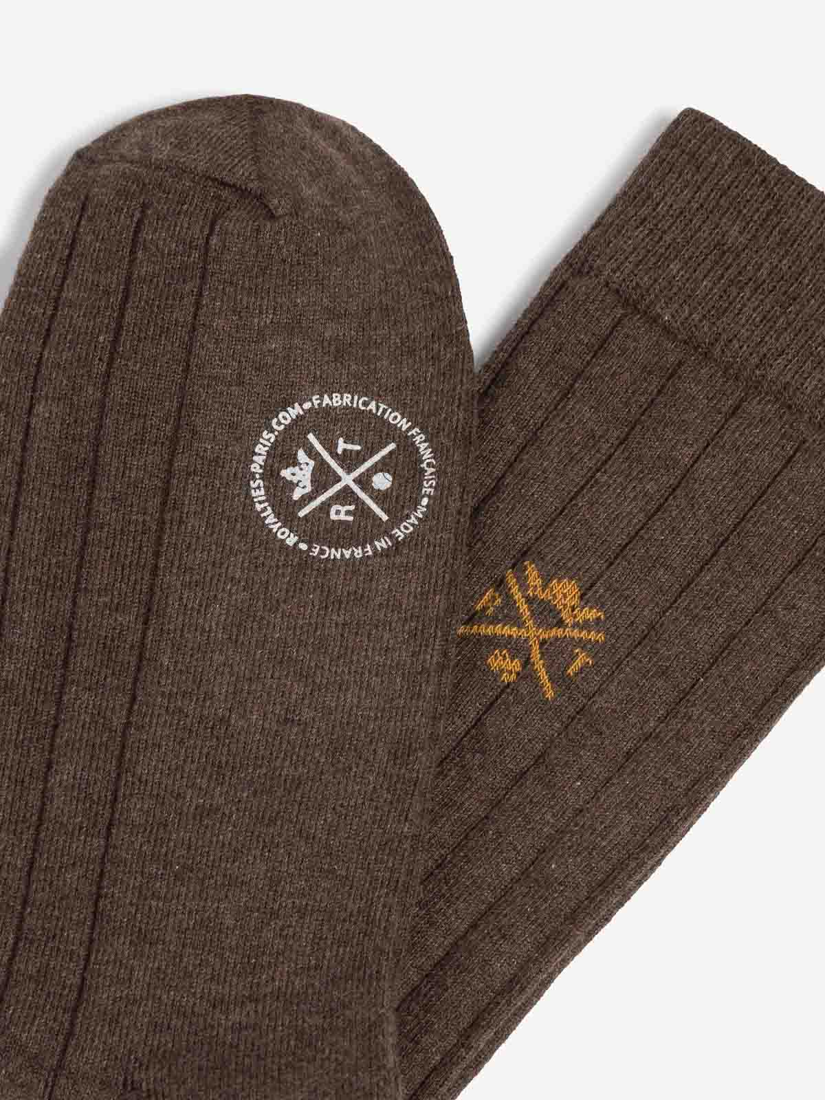 Plain and rib give this sock model a graphic look with contrasting vertical stripes.