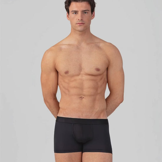 Los calzoncillos bóxer RD están inspirados en el modelo desarrollado para el ejército sueco en la década de 1970. Ahora están disponibles en una versión técnica de poliéster reciclado, transpirable y ligero, especialmente diseñado para la práctica deportiva. Presentan una cinturilla elástica tono sobre tono con el logotipo de RONDORFF y dos ojales laterales bordados tono sobre tono con la palabra RD.