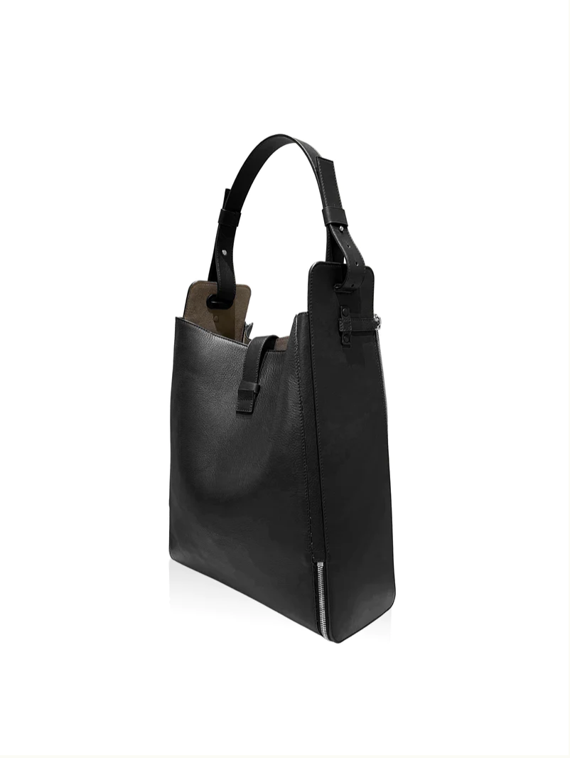 Es un tote vertical, minimalista y muy urbano. El espacio interior es de fácil acceso gracias a un espacio completo y diáfano. Está inspirado en un kimono: puedes plegarlo hasta quedar plano después de haberlo abierto completamente cuando quieras guardarlo o meterlo en tu equipaje. Bellamente hecho a mano en nuestro taller con un conocimiento tradicional único. Piel natural mate.