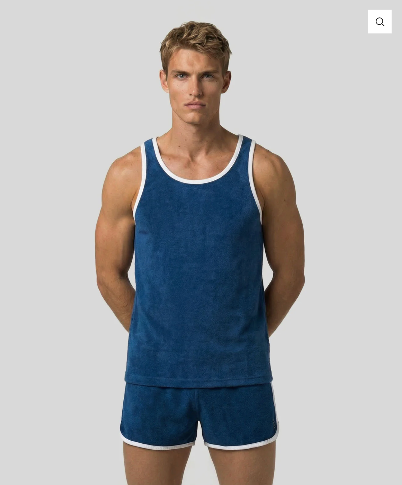 Le nouveau débardeur de sport RD est conçu dans un tissu éponge léger et ultra doux, composé de coton bio et de polyester recyclé. Le terry est la matière idéale et agréable pour la plage ou la piscine, tout en apportant une touche vintage. Revisité avec des bords blancs pour un look sportif. Les deux œillets RD brodés ton-sur-ton sur le côté.