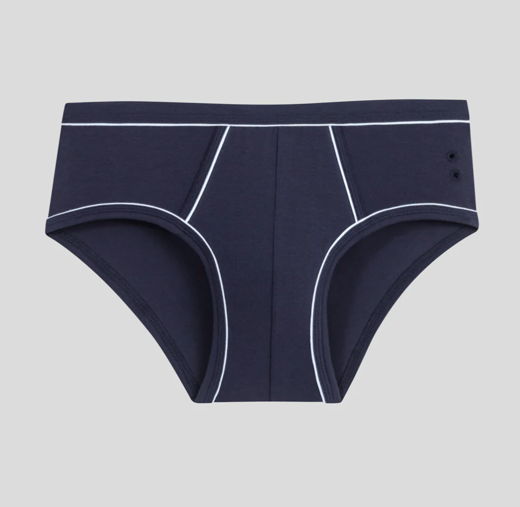 Le seul et unique slip Ron Dorff, inspiré d'un modèle développé pour l'armée suédoise dans les années 70, avec des lignes vintages. Conçu avec une coupe légèrement ajustée et taillé dans un jersey coton premium avec une touche d'élasthanne qui garantit une tenue impeccable lavage après lavage. Ceinture élastique recouverte de tissus avec des coutures renforcées pour un confort optimal. Ouverture braguette pour une praticité optimale. Les deux œillets Ron Dorff brodés ton-sur-ton sur le côté sont sa seule signature.